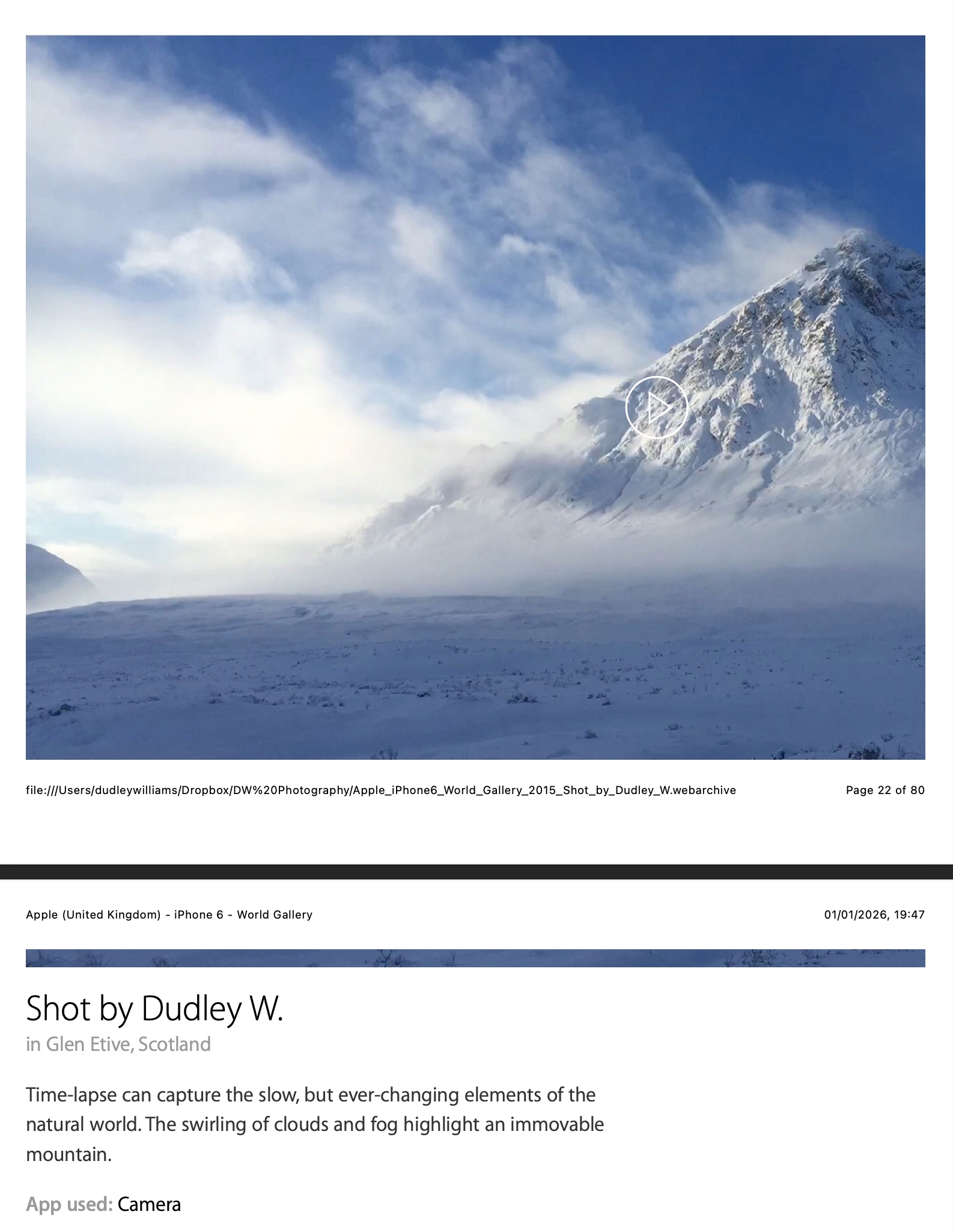 It was an odd, pleasing contrast to take in: a van half-buried in snow at the head of Glen Etive, a cheap tripod, a new phone bought on a lunch break — and then, a couple of weeks later, paperwork from Apple.